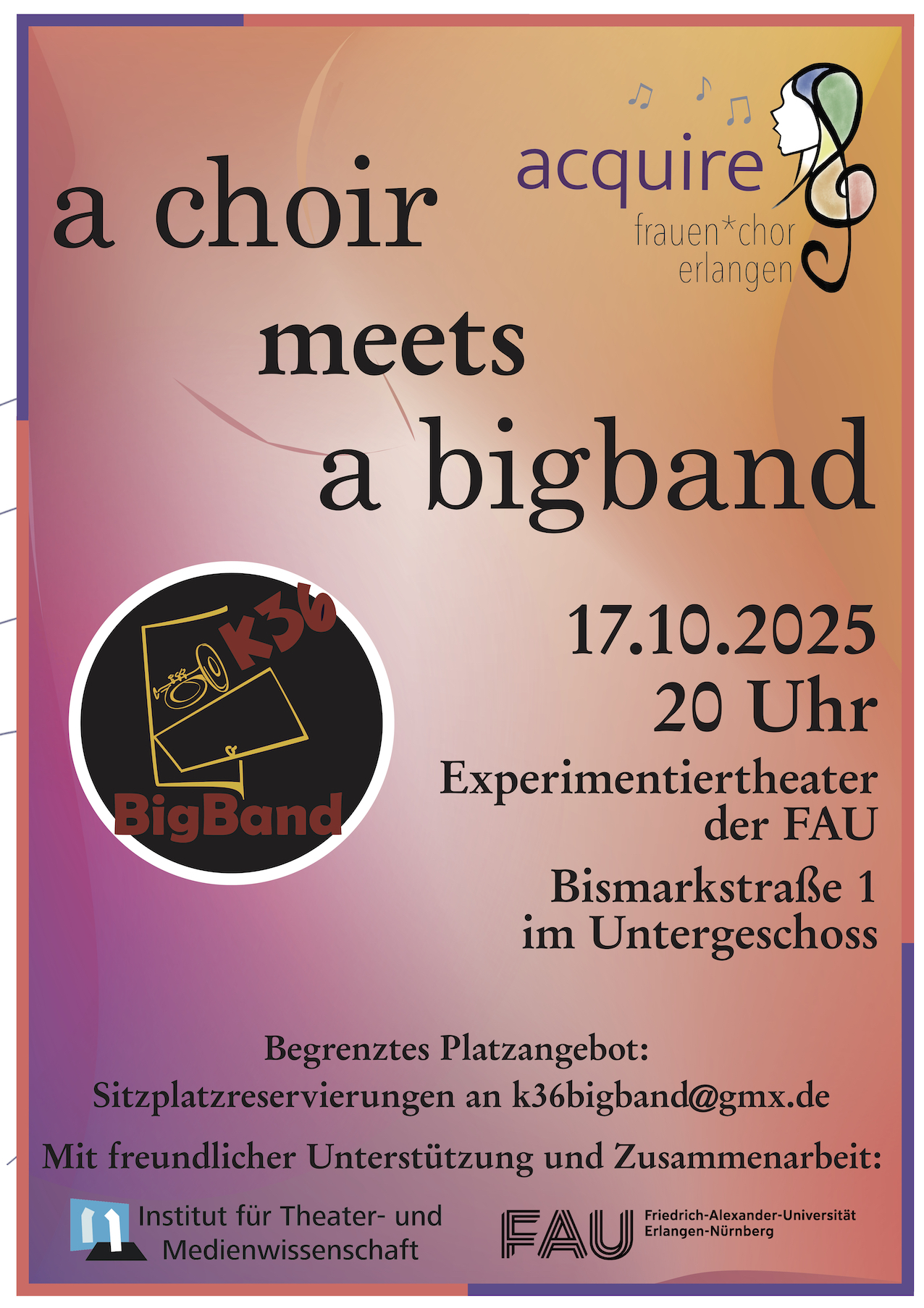 KONZERT: acquire – frauen*chor und die K36 Big Band zu Gast im EX am 17. Oktober 2025, 20 Uhr