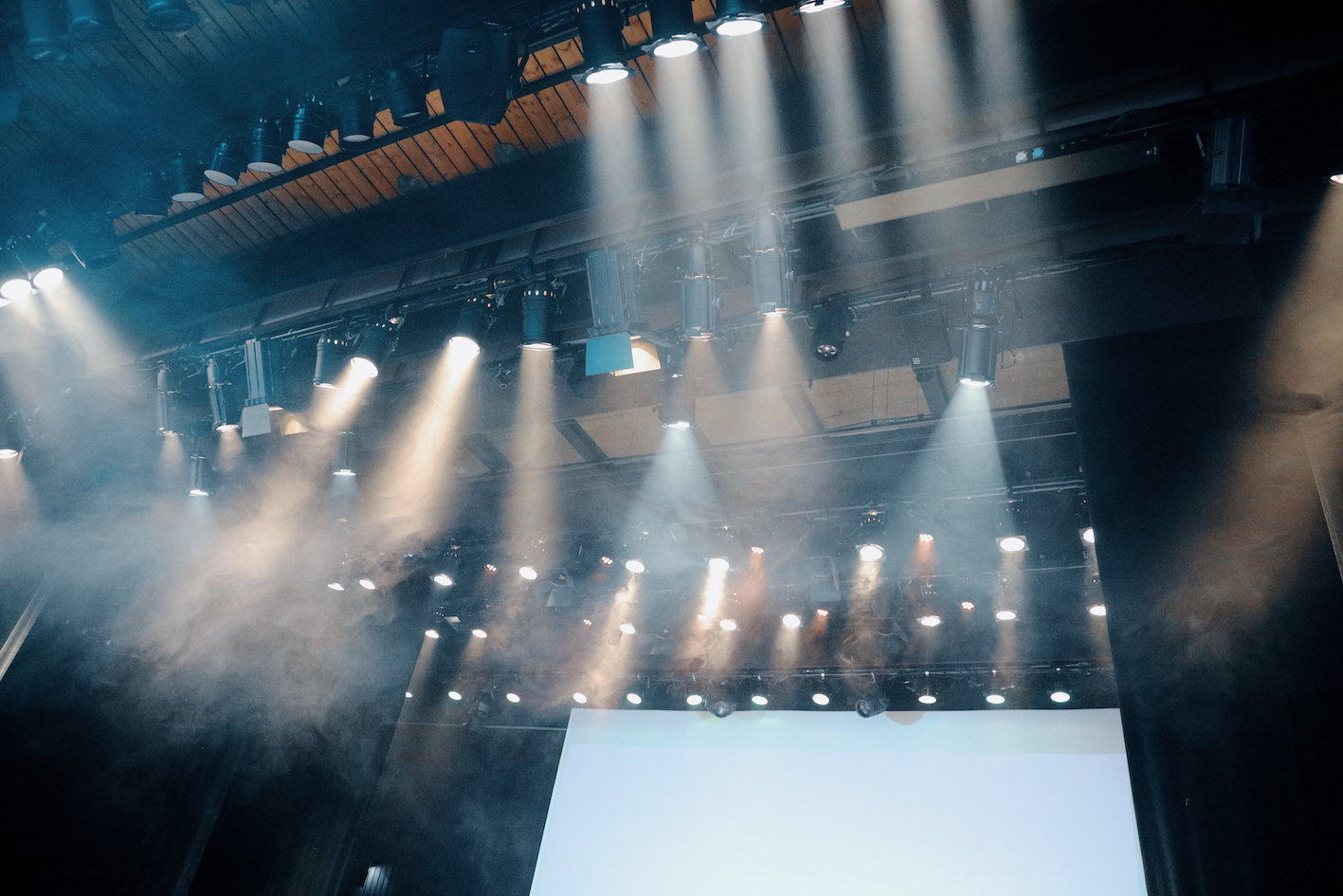 - Über 210 Scheinwerfer unterschiedlicher Typen (u.a. Profiler, Stufenlinsen, Fluter, Bodenscheinwerfer, Spots, UV-Leuchten, Effektgeräte in Halogen oder LED-Technik), Moving Lights mit modernster Zoom- und LED Technik
