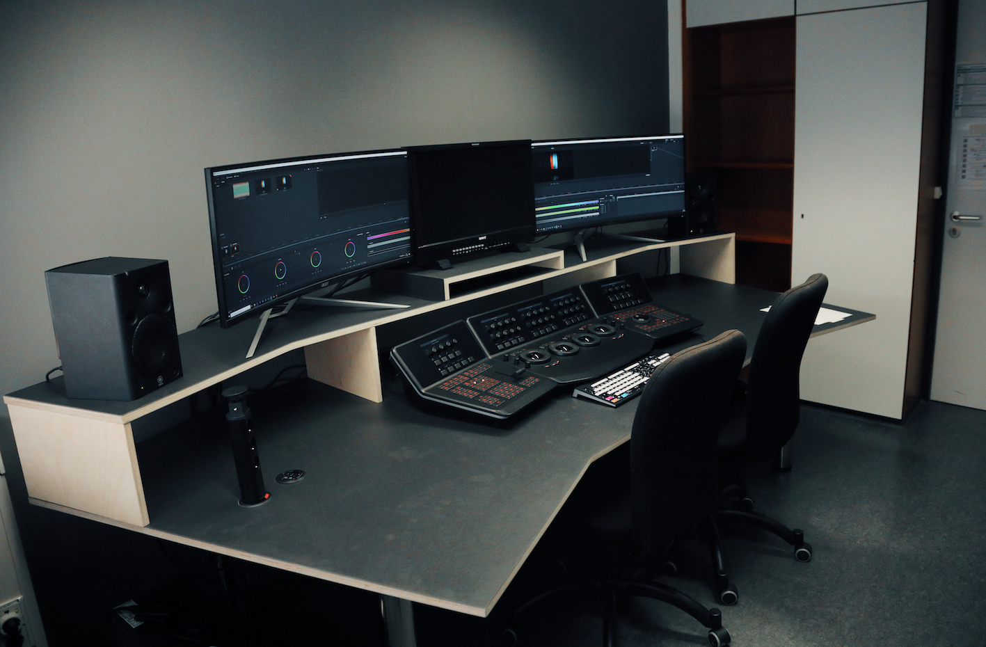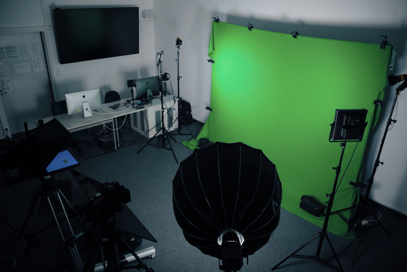 10/10Herzstück ist ein TV-Studio mit 3 ferngesteuerten 4K PTZ-Kameras sowie Teleprompteranlage. Bei Bedarf können noch bis zu 10 mobile Kameras zugeschaltet werden. Dazu gibt es eine DaVinci Farbkorrektursuite für hochauflösendes Bildmaterial und Referenzbeurteilung der Bildqualität und der Farben.